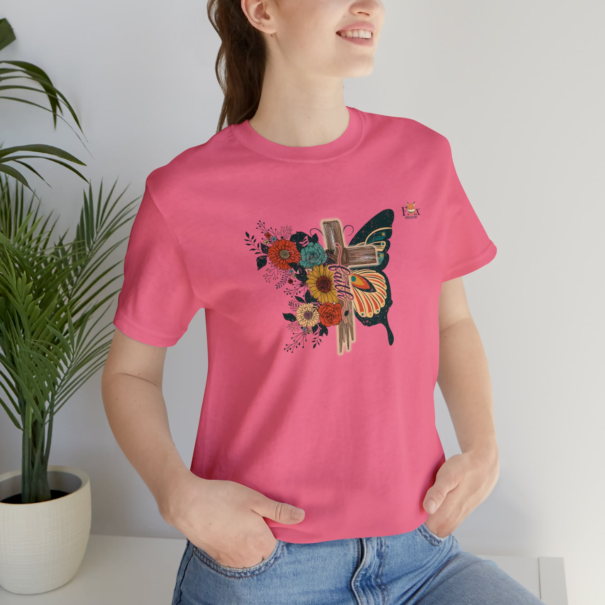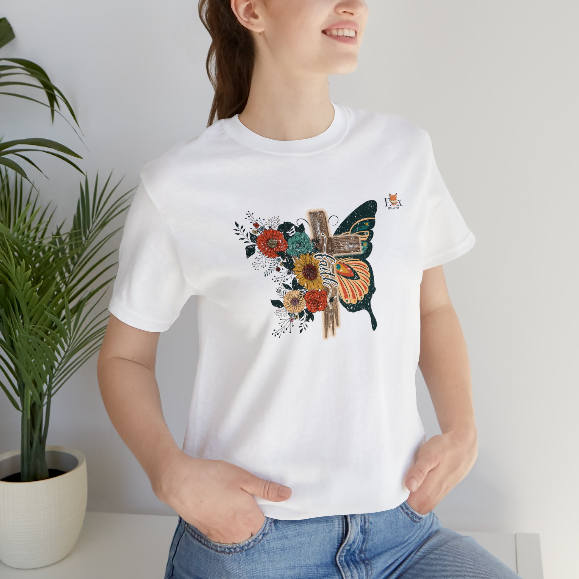 Wear a fashionable and original - Beautiful Cross and butterfly T-shirt. This T-shirt who puts a new spin on casual comfort is very soft to the touch. We use materials that are durable and comfortable to wear even in the hottest temperatures, so it retains its shape even after washing. There are no itchy side seams on these T-shirt. Manufactured with high quality printing, we sell T-shirt with extremely vibrant and deep colors that can reach between 300 and 900 Dot Per Pixel (DPI). This is the Adelsa Fox brand, beyond the horizon.