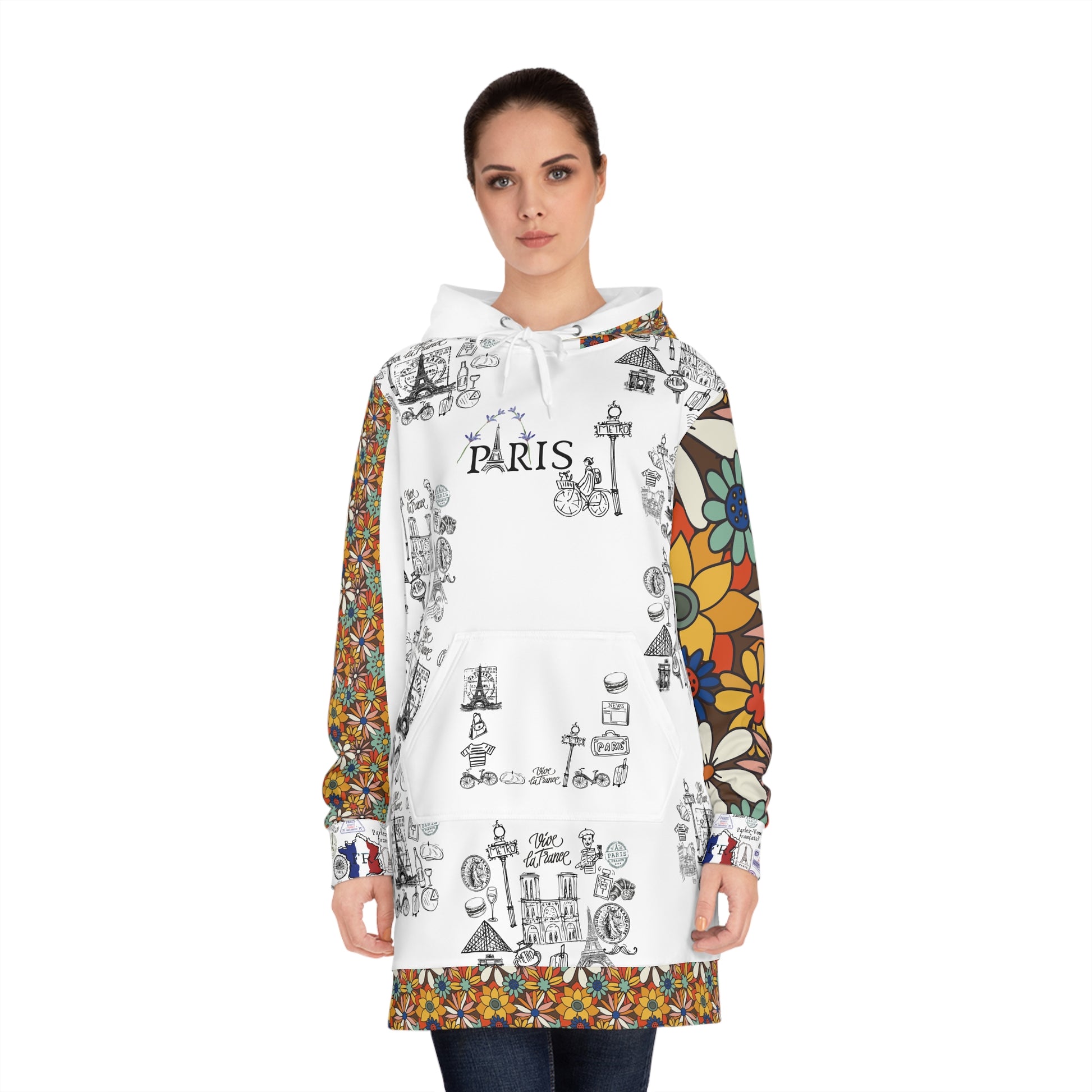 Whether you're touring the city, exploring local cafés, or just looking to add a touch of French elegance to your everyday wardrobe, this hoodie dress will become your go-to favorite. It's more than just a piece of clothing—it's a work of art, a piece of France you can wear.