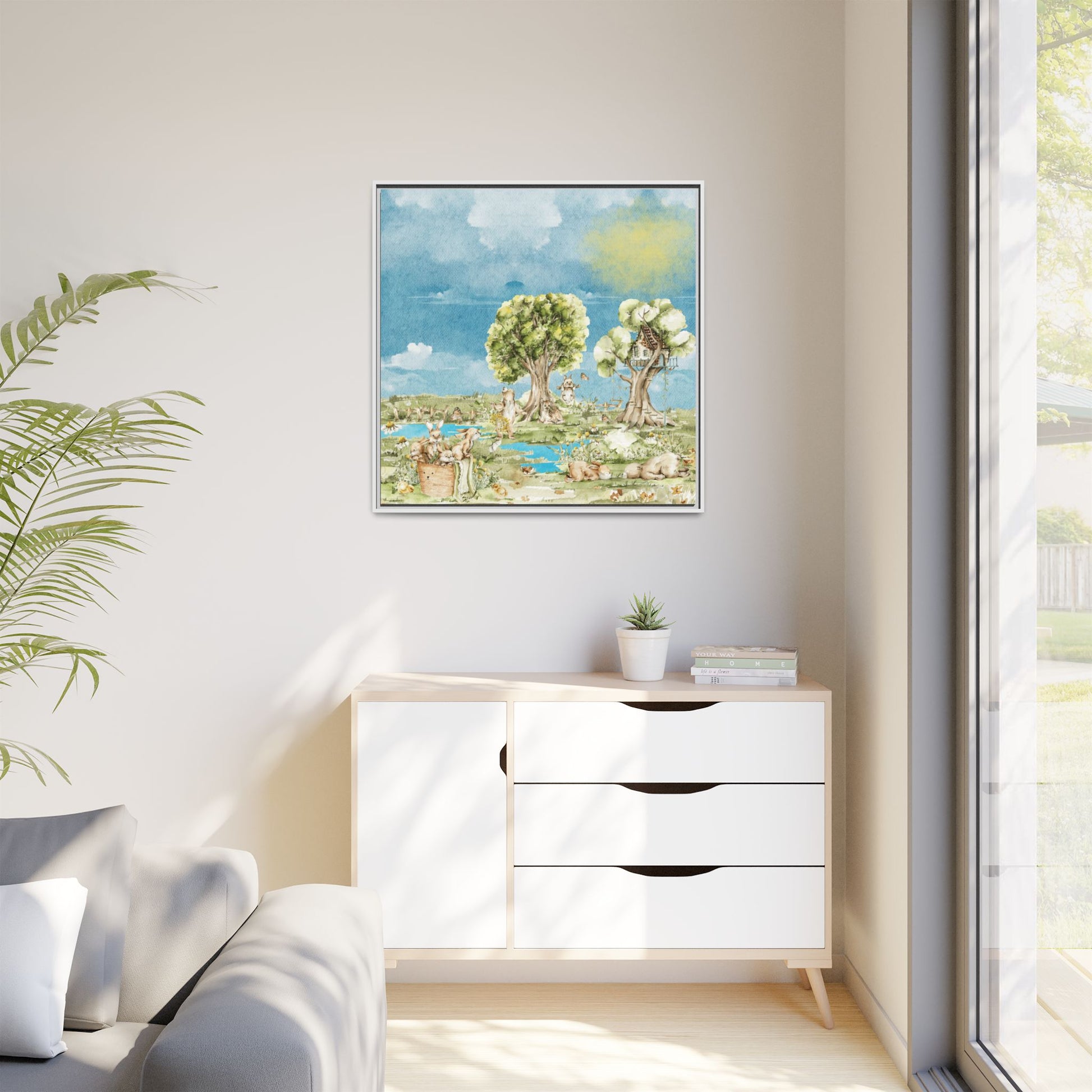 Care instructions: If the canvas does gather any dust, you may wipe it off gently with a clean, damp cloth.