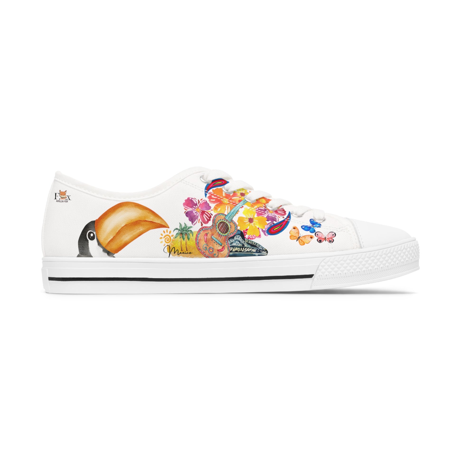 These sneakers stands out, since you will walk with 2 original and captivating drawings referring to Mexico. This summer you will be able to discover new horizons and walk miles of happiness without wearing out your sneakers! Discover the comfort of polyester walking shoe. You'll love walking around with the summer Travel Edition Collection of Adelsa Fox Sneakers -Mexico is calling & i must Go. A collection with warm, festive motifs reminding us the joy of travelling.