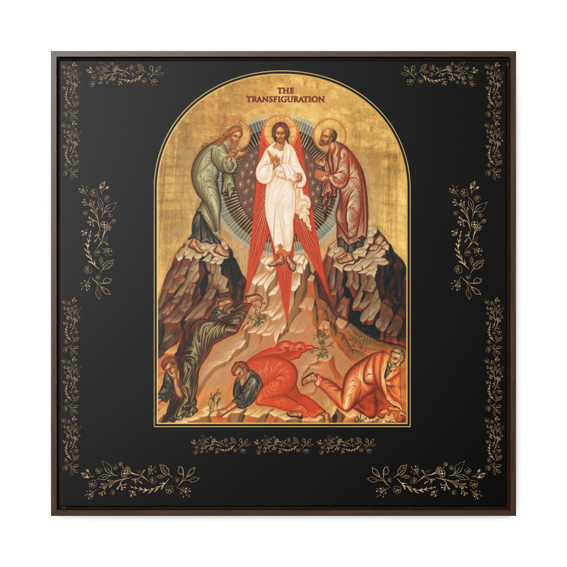 This icon of The Transfiguration of Jesus , is produced, with the latest techniques of the industry who provide vibrant, bright and crisp colors. Every frame is build with a solid face to support the canvas and prevent deforming. This High quality materials canva guarantees that he will live for generations. This icon is part of our oriental collection of the Catholic Church of the Syriac Chaldean tradition.
